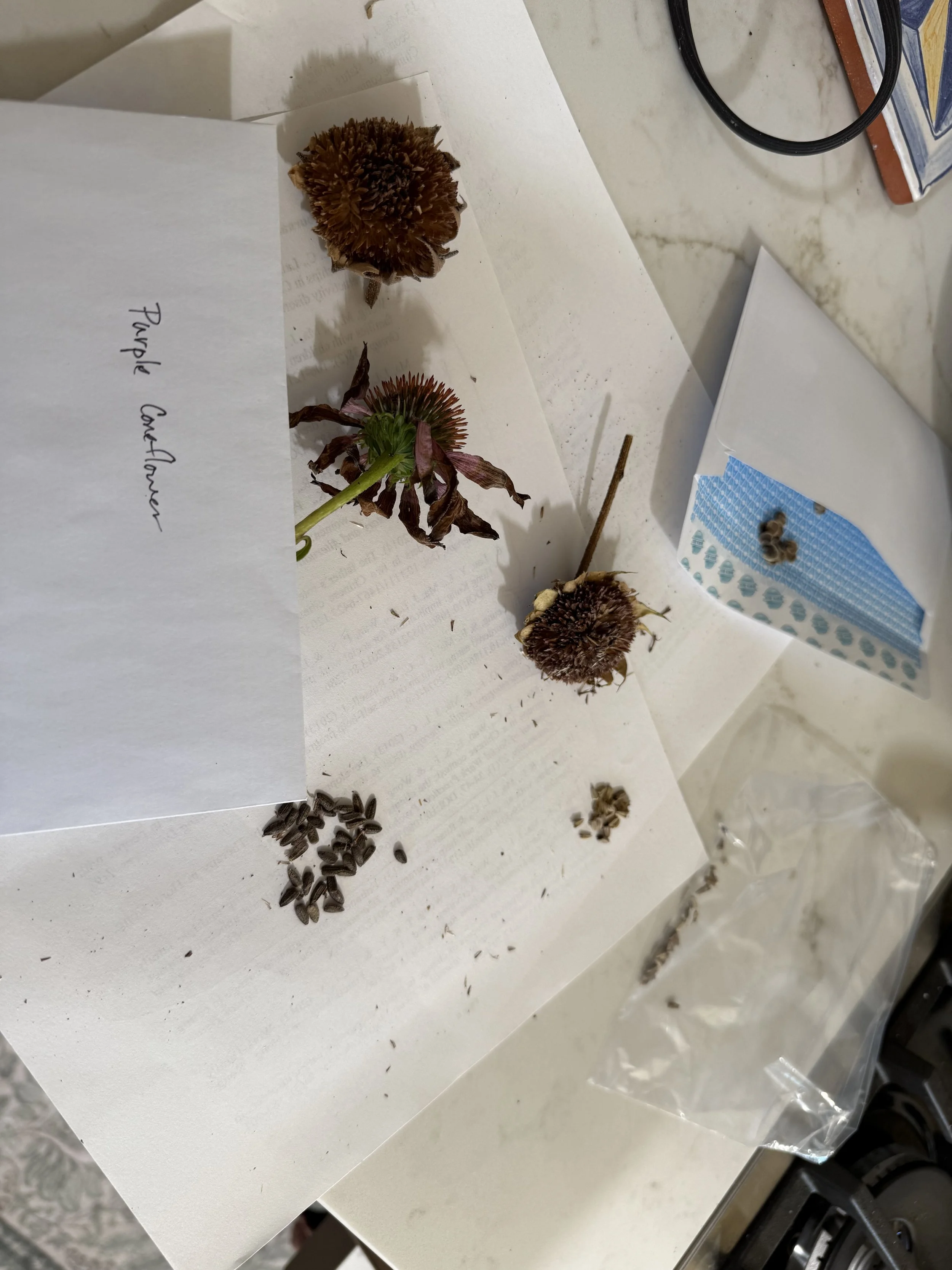 I’ve also collected seeds from the coneflowers and the wild sunflowers that grew in the driveway. These perennials, the Hollyhocks and Coneflowers at least, aren’t supposed to flower in their first year and so it will be a while before I’ll know what worked.