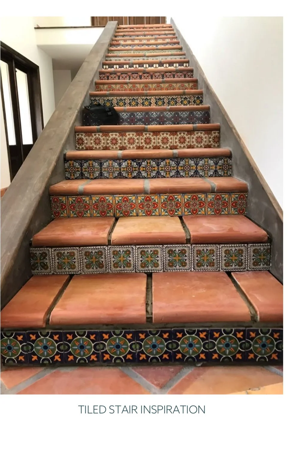 A new staircase will start in the living room and turn twice before landing in the basement family room. The new stairs are highlighted in blue in the diagram above, just to the right of the "living room”. An “inspiration photo” below shows the spirit of what we hope these stairs might look like.