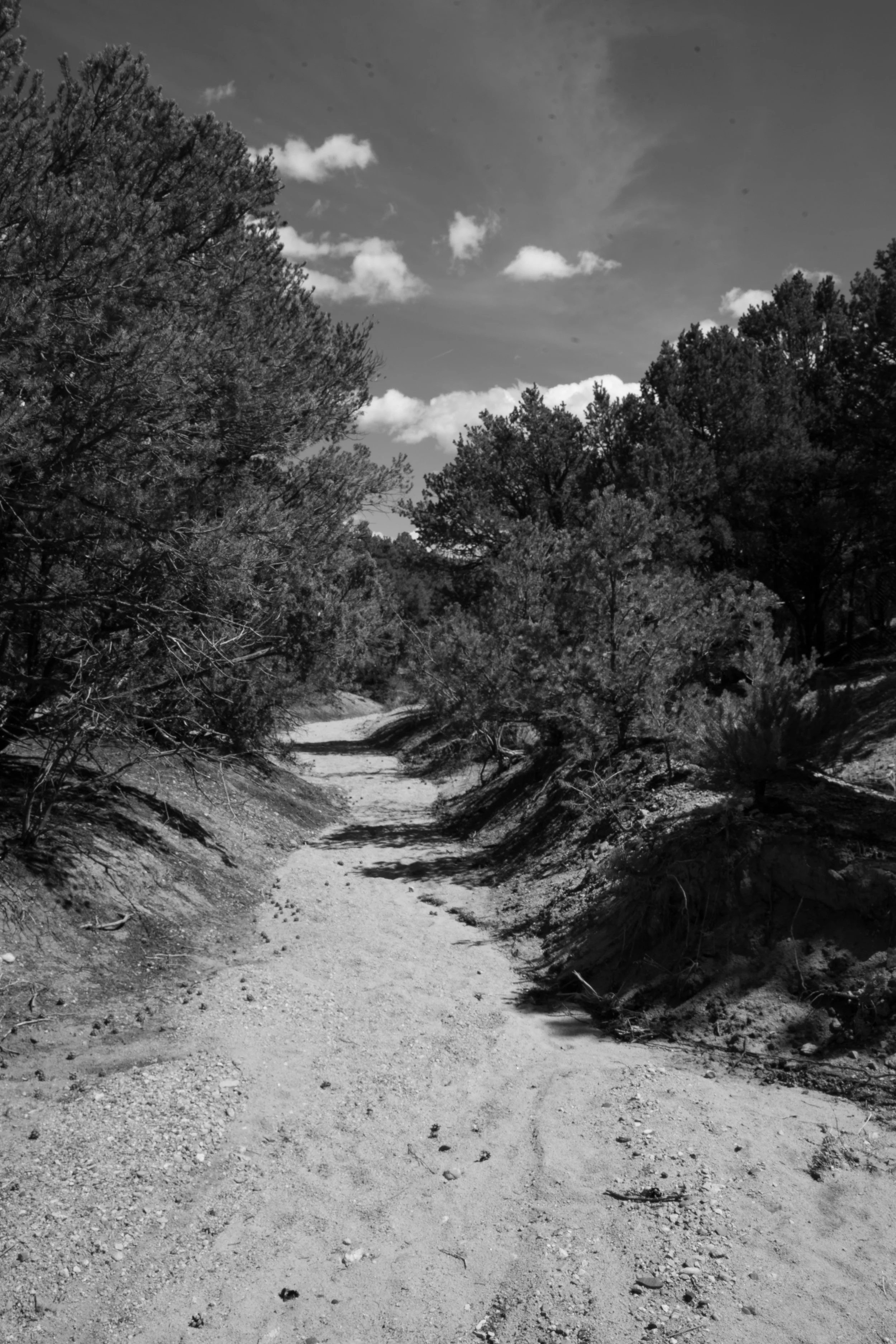 This is pretty much a throwaway shot of our arroyo. Somehow b&w makes it less boring than color. I can aspire to figuring out how to make this actually a good shot. Also, I don’t know who sneezed on my lens or my sensor, but apologies for the splotches at the top. I’ll try to clean this up and replace it later.