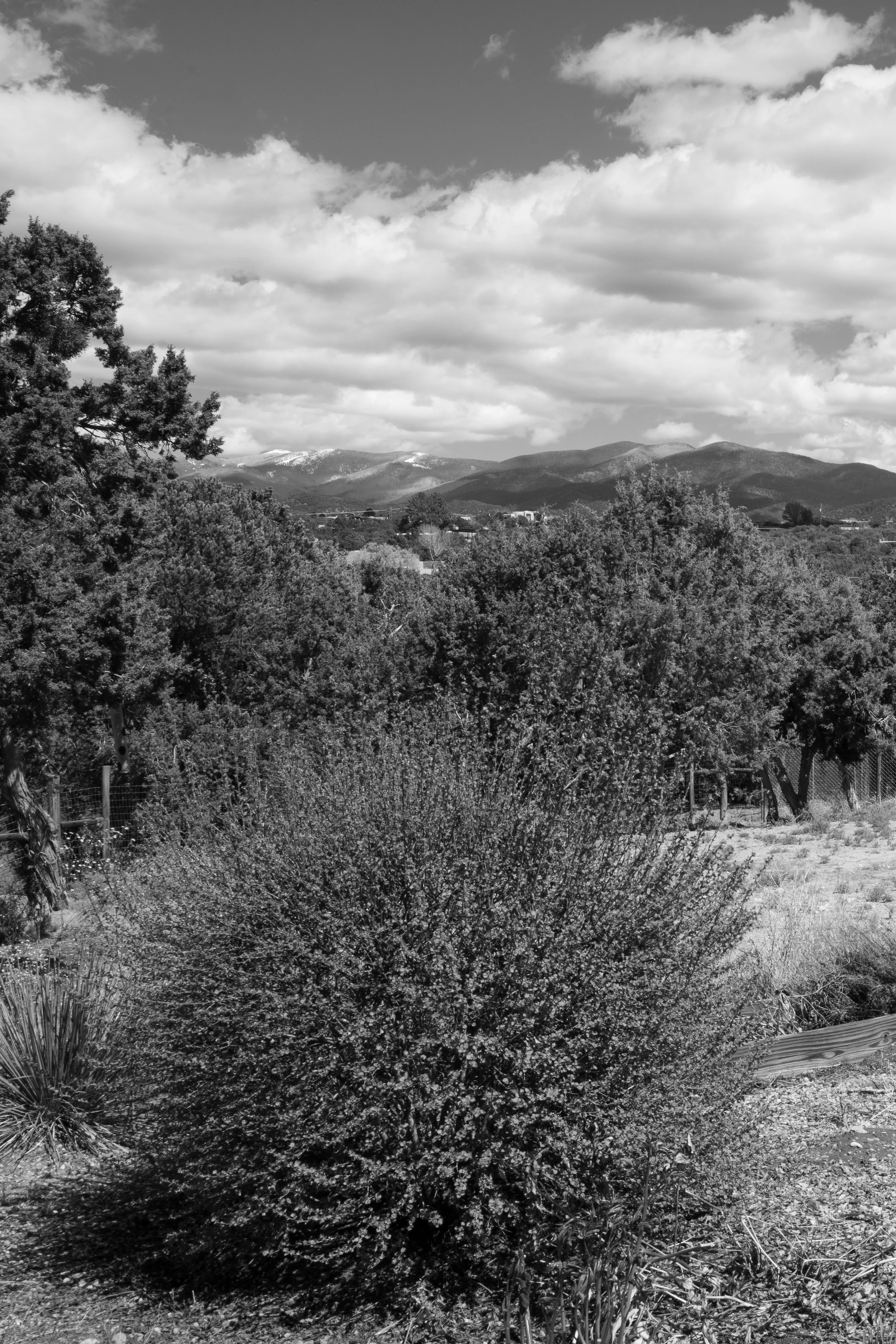This only sort of works, but it’s a heck of a lot better in b&w than in color. I wanted to highlight the shrub in the foreground. If you think it gets lost here you should see it in color. I definitely didn’t get what I was aiming for, but I like the photo anyhow. I had the shrub in the lower right, which actually served better to highlight it, but needed to crop out a lot of ugly distraction. I’ll have to try again, positioning myself differently.