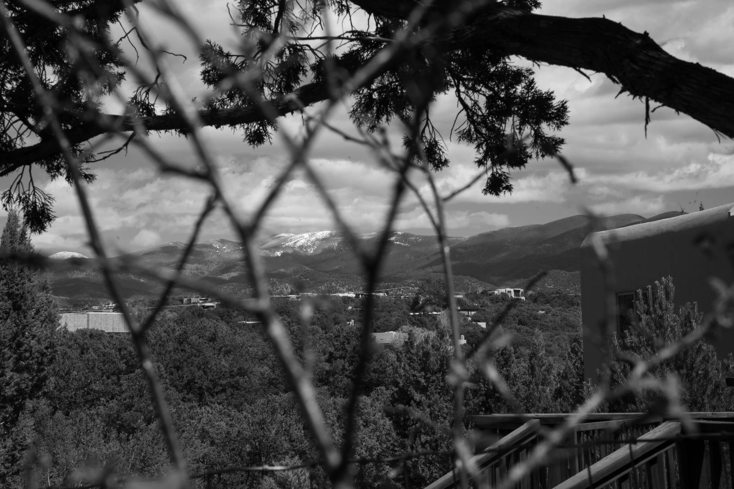 I think this one works, and it definitely works best in b&w. I wanted the most important elements to be the mountains, trees, and branches. In color, the man-made objects are much more distracting than they are here. I should try this again with a less dramatic f-stop.