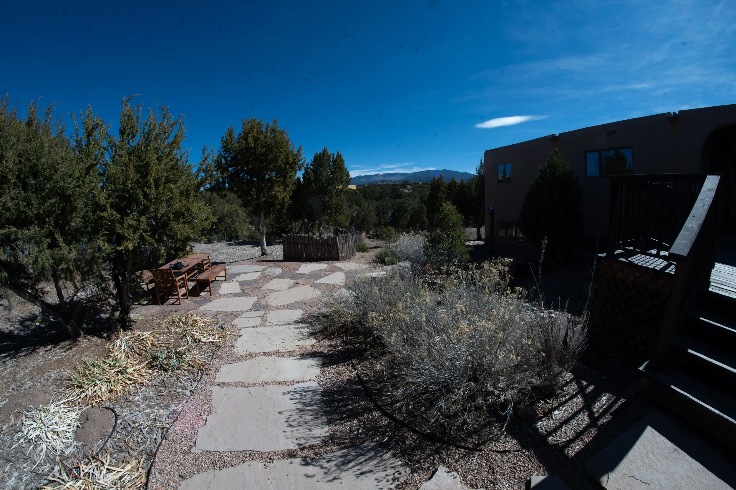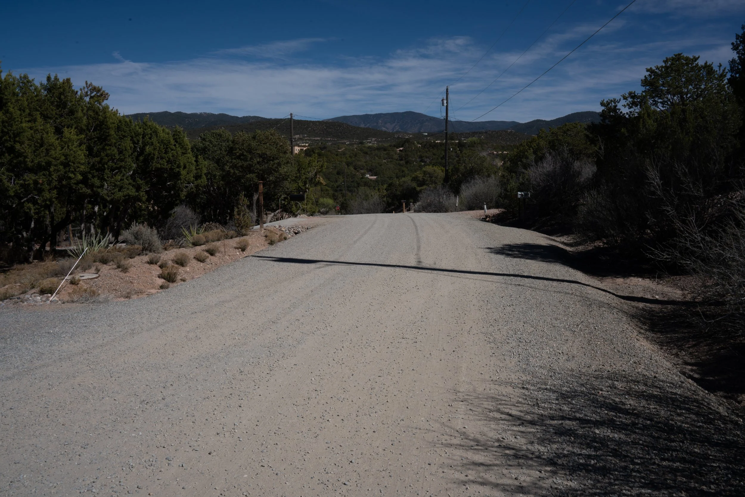 This is the road in front of our house. It looks like we must be miles out of town in some remote area. Instead, we’re in the city limits and a couple miles from downtown. A lot of Santa Fe roads look like this, as it turns out, and I don’t know if it’s just priorities in the face of a lack of city funds or if it’s all about aesthetics. And I don’t care. In the background you get a hint of why I don’t care.