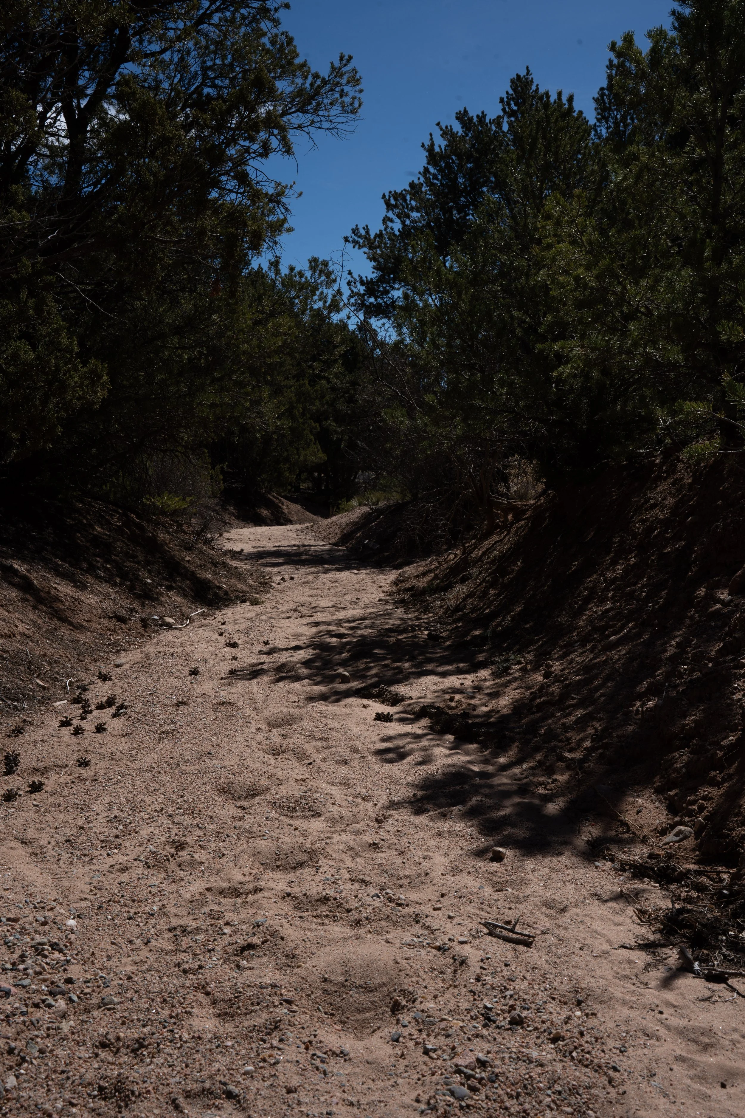 This arroyo runs through the back of our property. Usually it looks like this, but on rare occasion it’s full of fast-moving water. So we’re told. For now it’s a footpath for people, dogs, and deer, mostly.