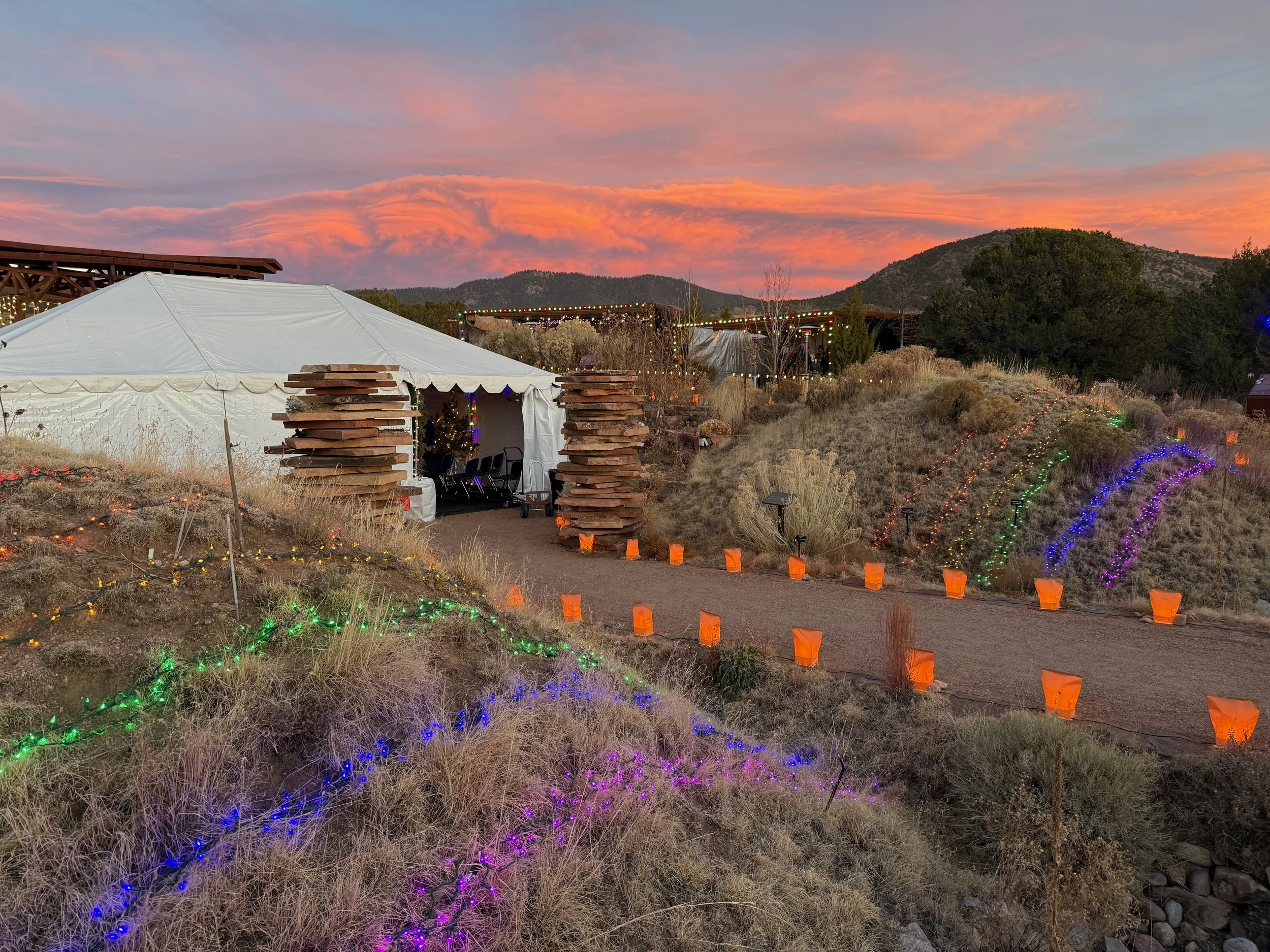 La Luz de las Noches is a winter event at the Santa Fe Botanical Garden. The Santa Fe sky insisted on getting in on the act before turning things over to the night. This one is from the archives: December 2025.